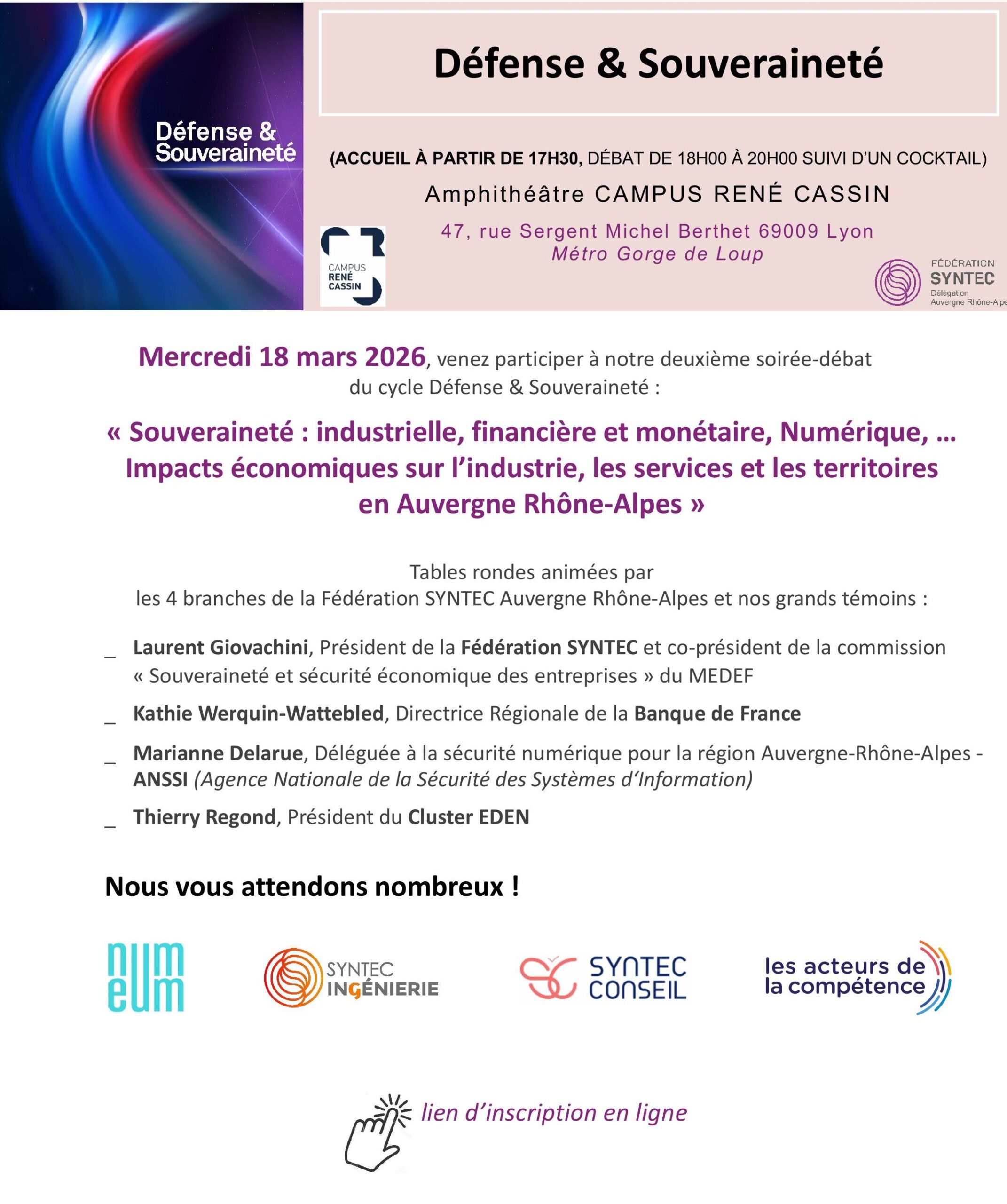 Le prochain cycle de 3 soirées-débats de la Délégation SYNTEC Auvergne Rhône-Alpes...